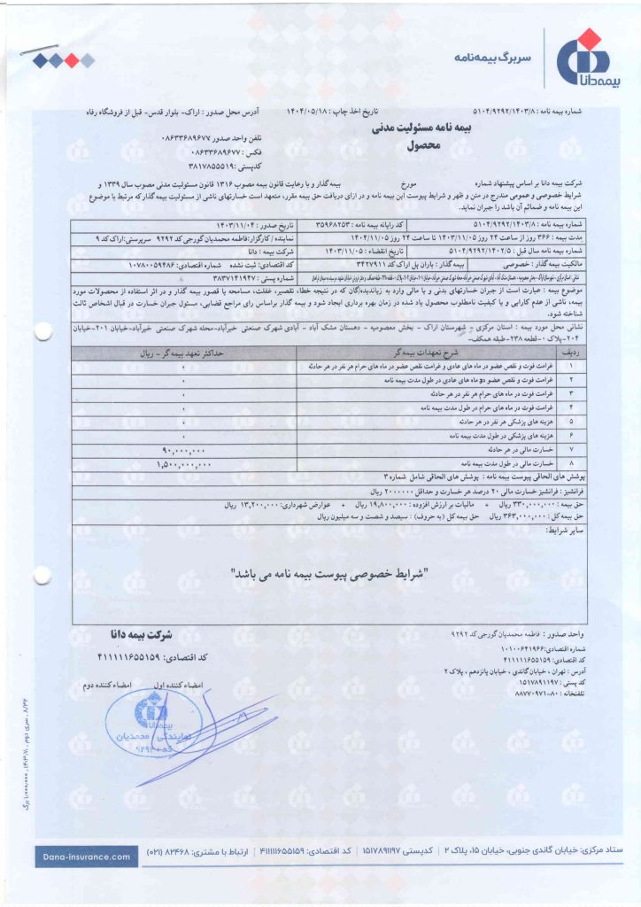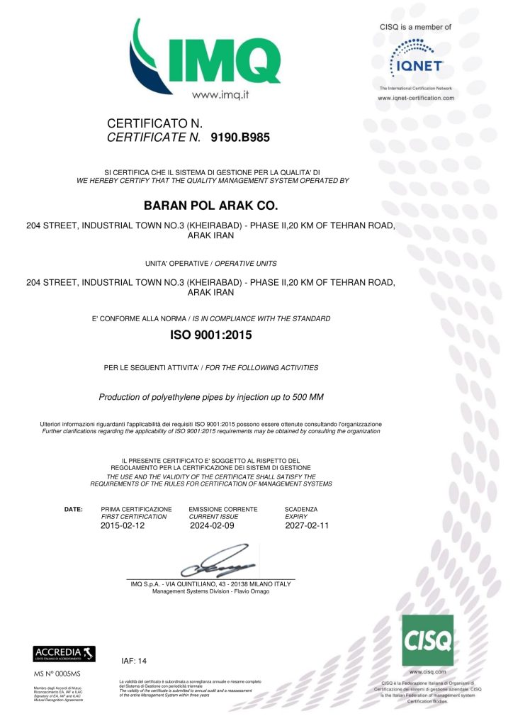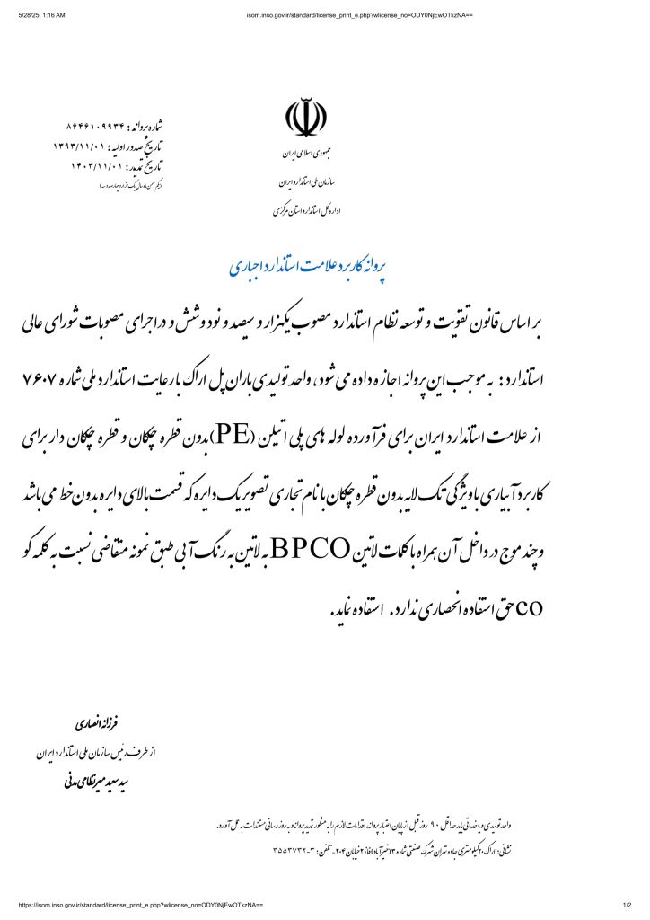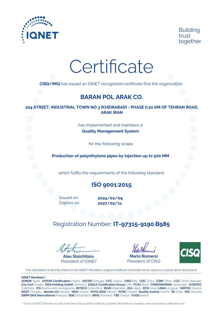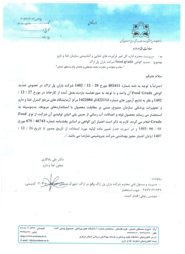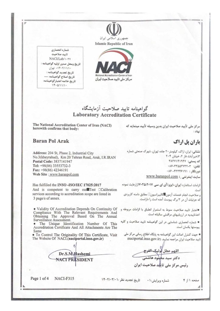 خطمشی کیفیت شرکت باران پل اراک